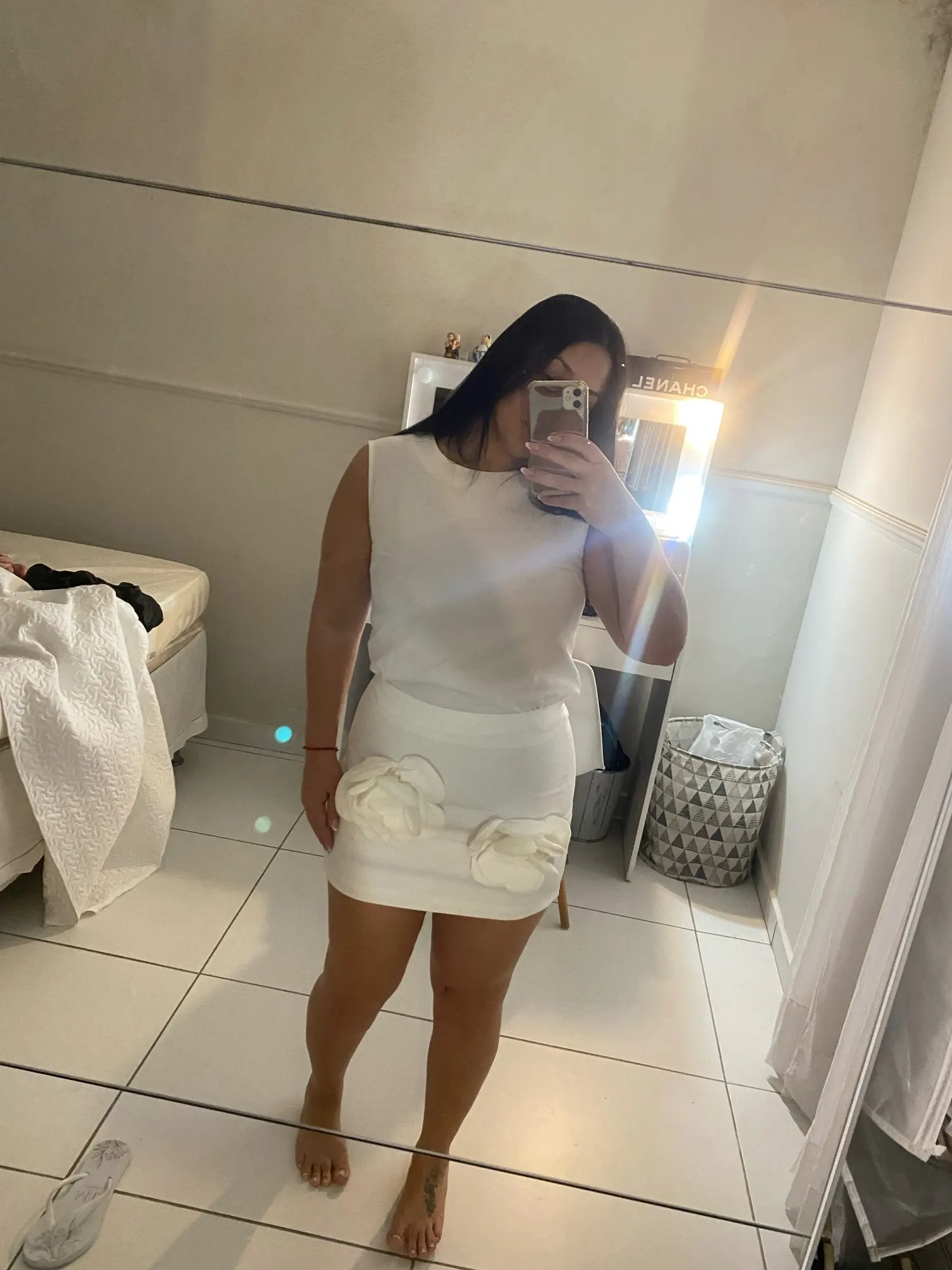 O conjunto Malu, com flores delicadas na saia, traz um toque de frescor e elegância ao seu guarda-roupa. Com um design sofisticado e detalhes florais encantadores, é perfeito para criar looks vibrantes e cheios de estilo