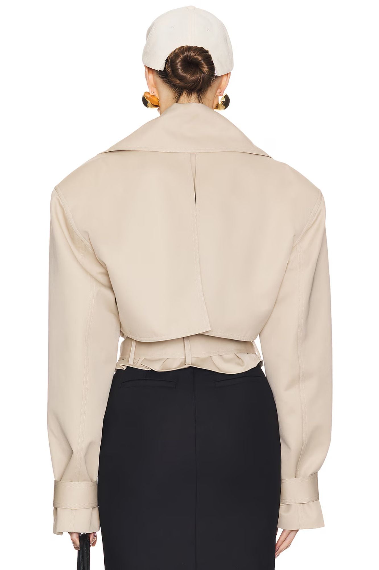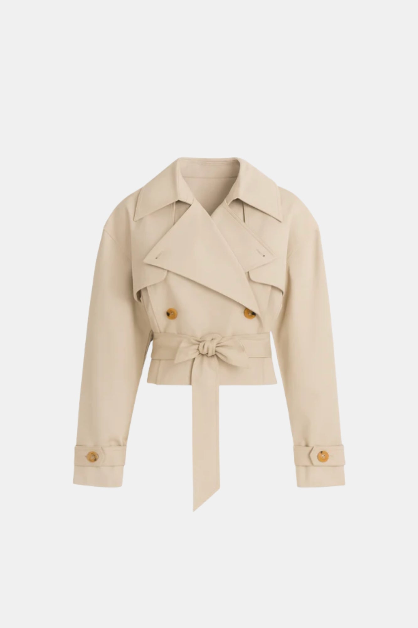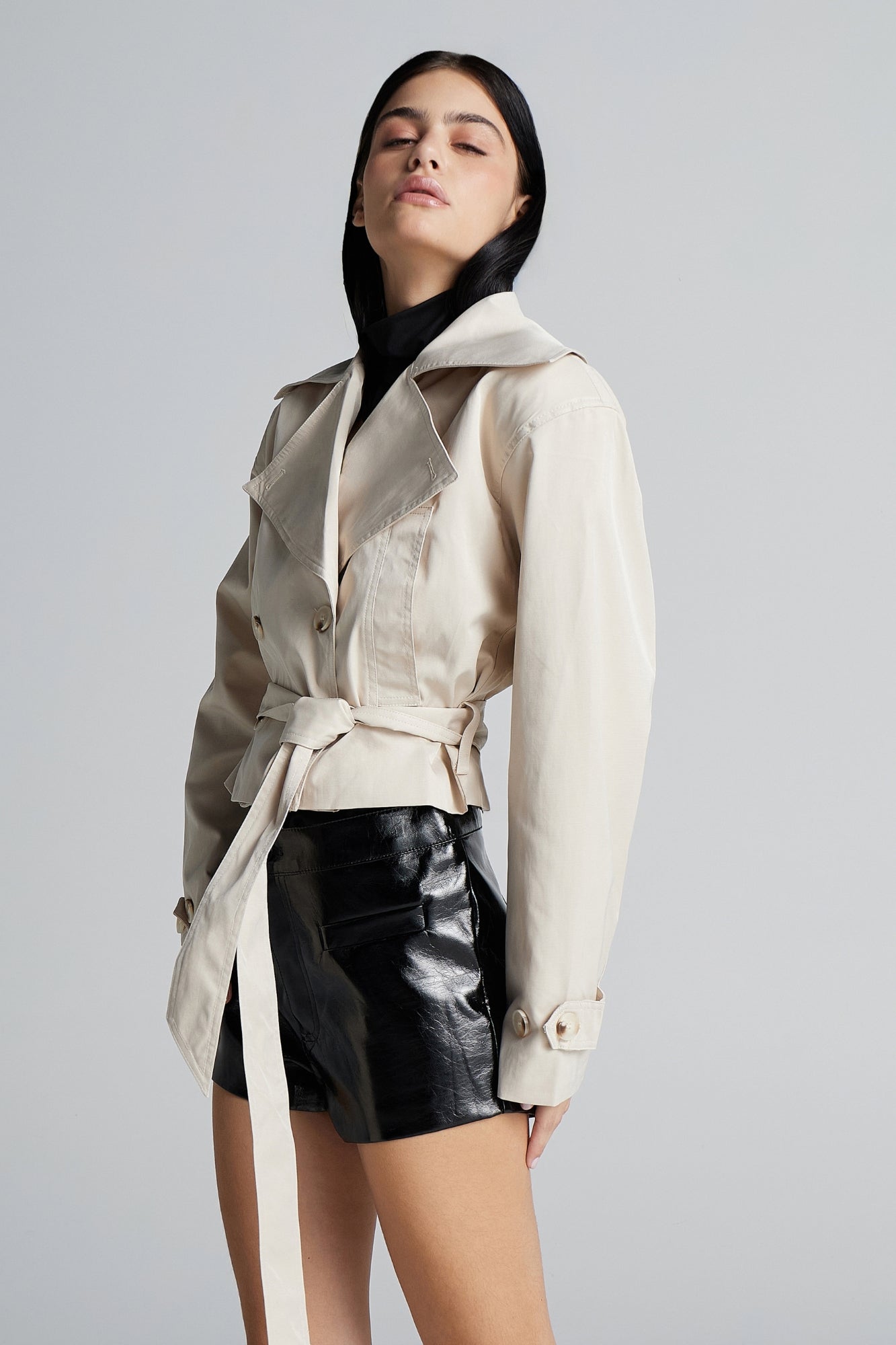 O cinto na cintura valoriza a silhueta, enquanto a modelagem oversized na parte superior equilibra sofisticação e atitude contemporânea. O acabamento é fosco e atemporal, ideal para composições que vão do dia à noite com naturalidade.