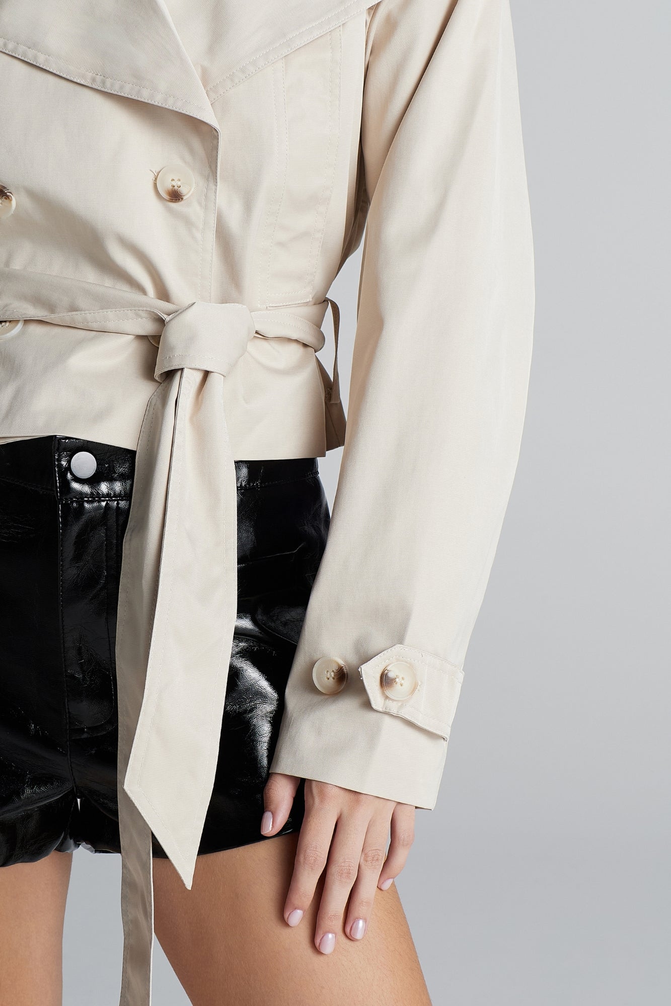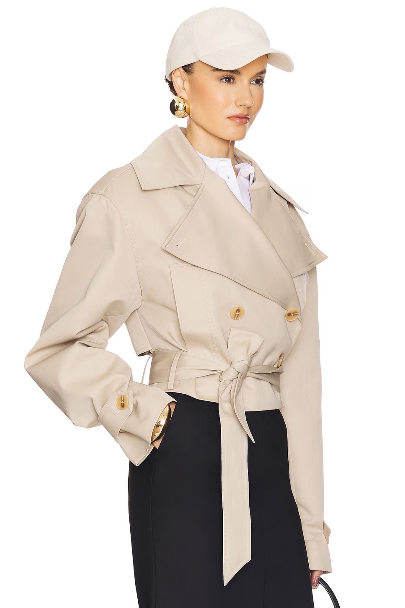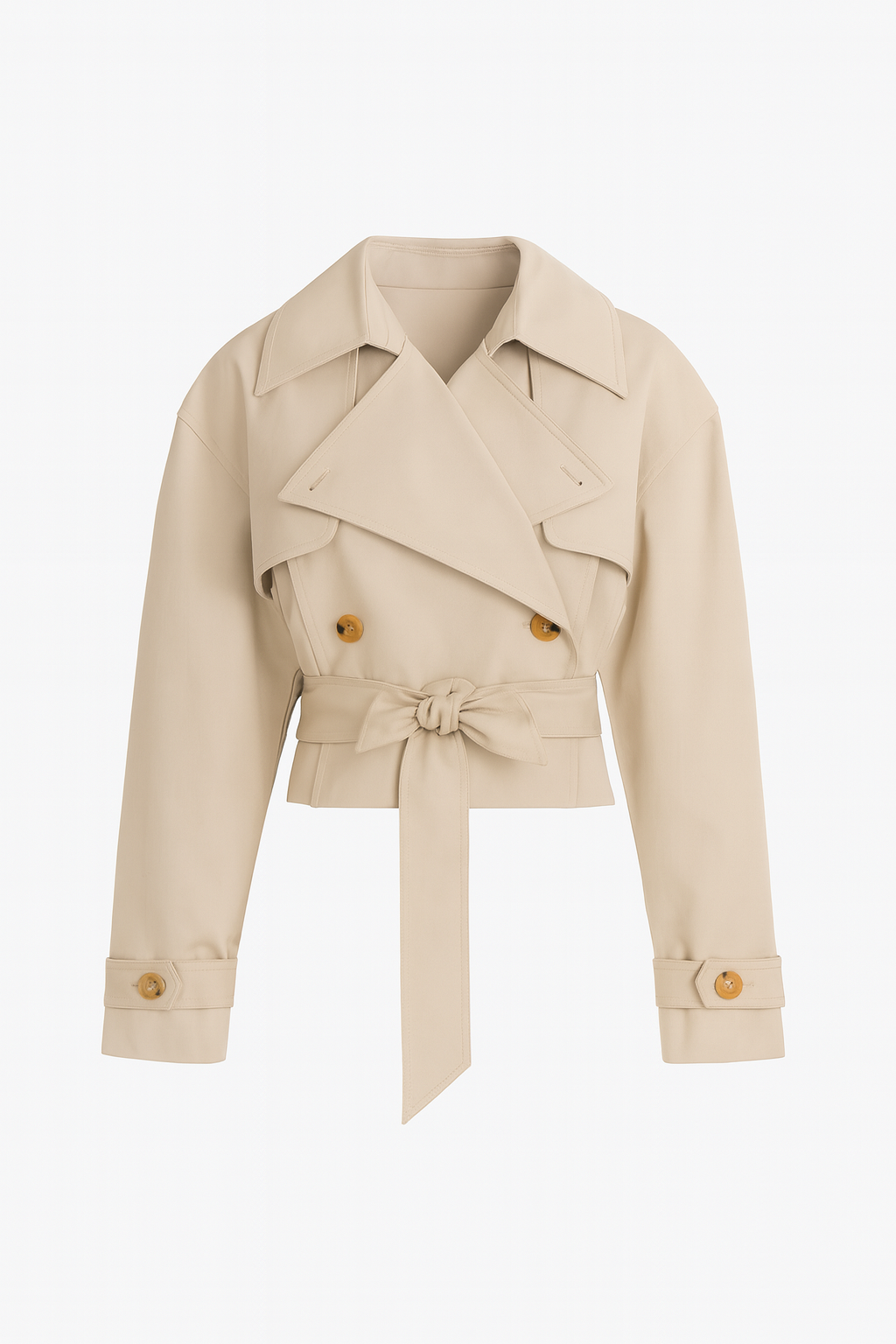 O cinto na cintura valoriza a silhueta, enquanto a modelagem oversized na parte superior equilibra sofisticação e atitude contemporânea. O acabamento é fosco e atemporal, ideal para composições que vão do dia à noite com naturalidade.