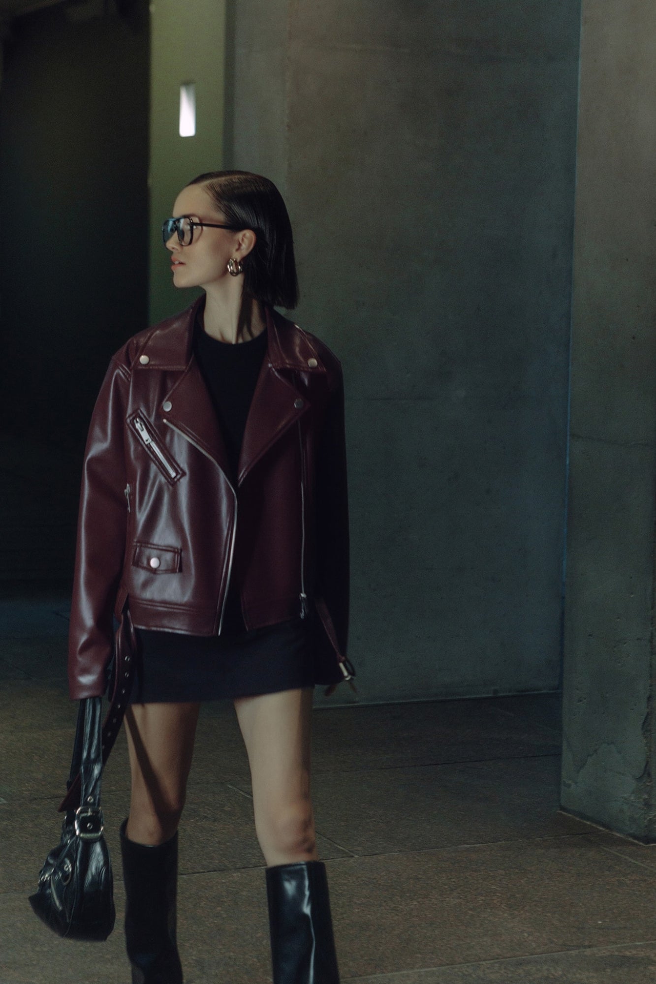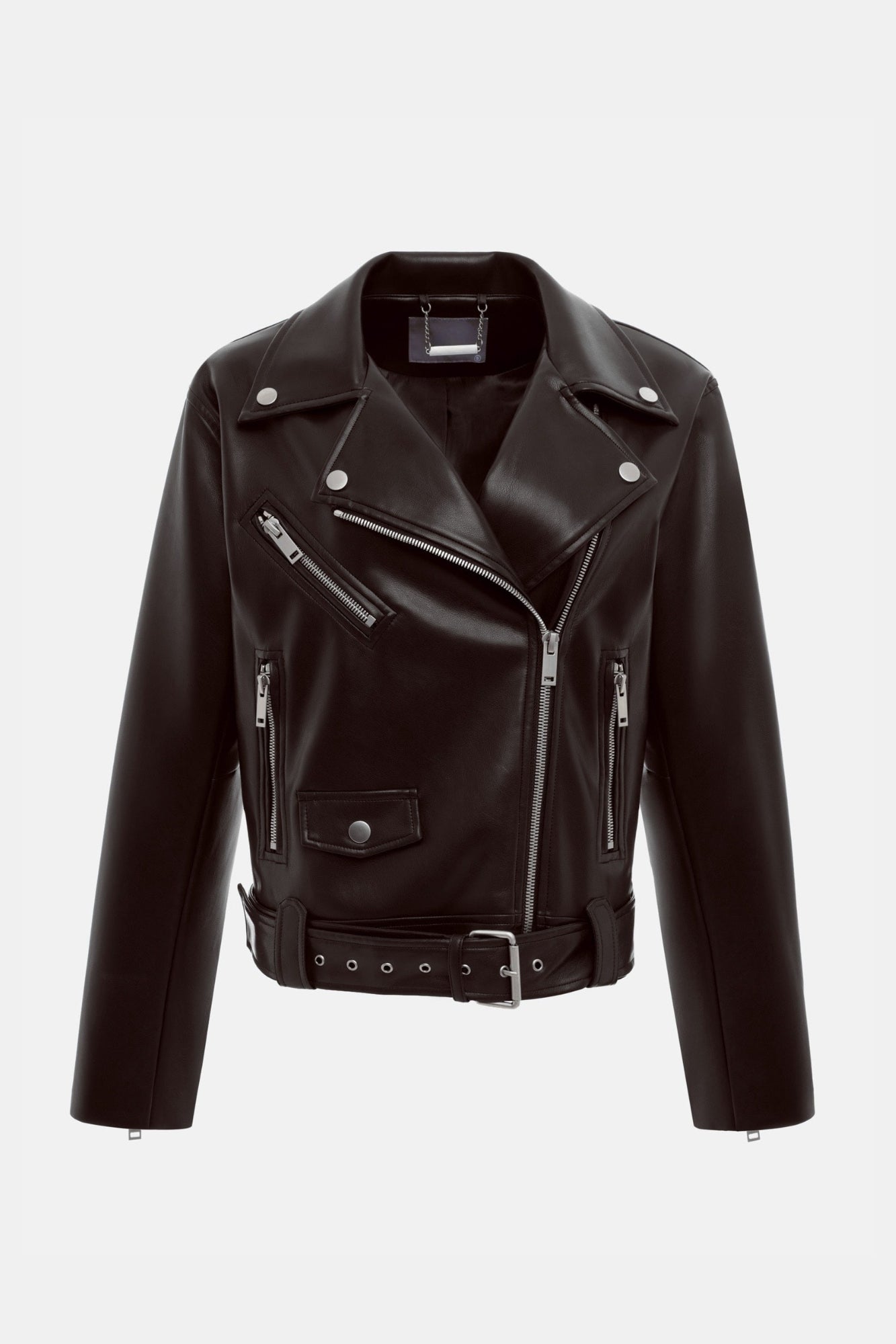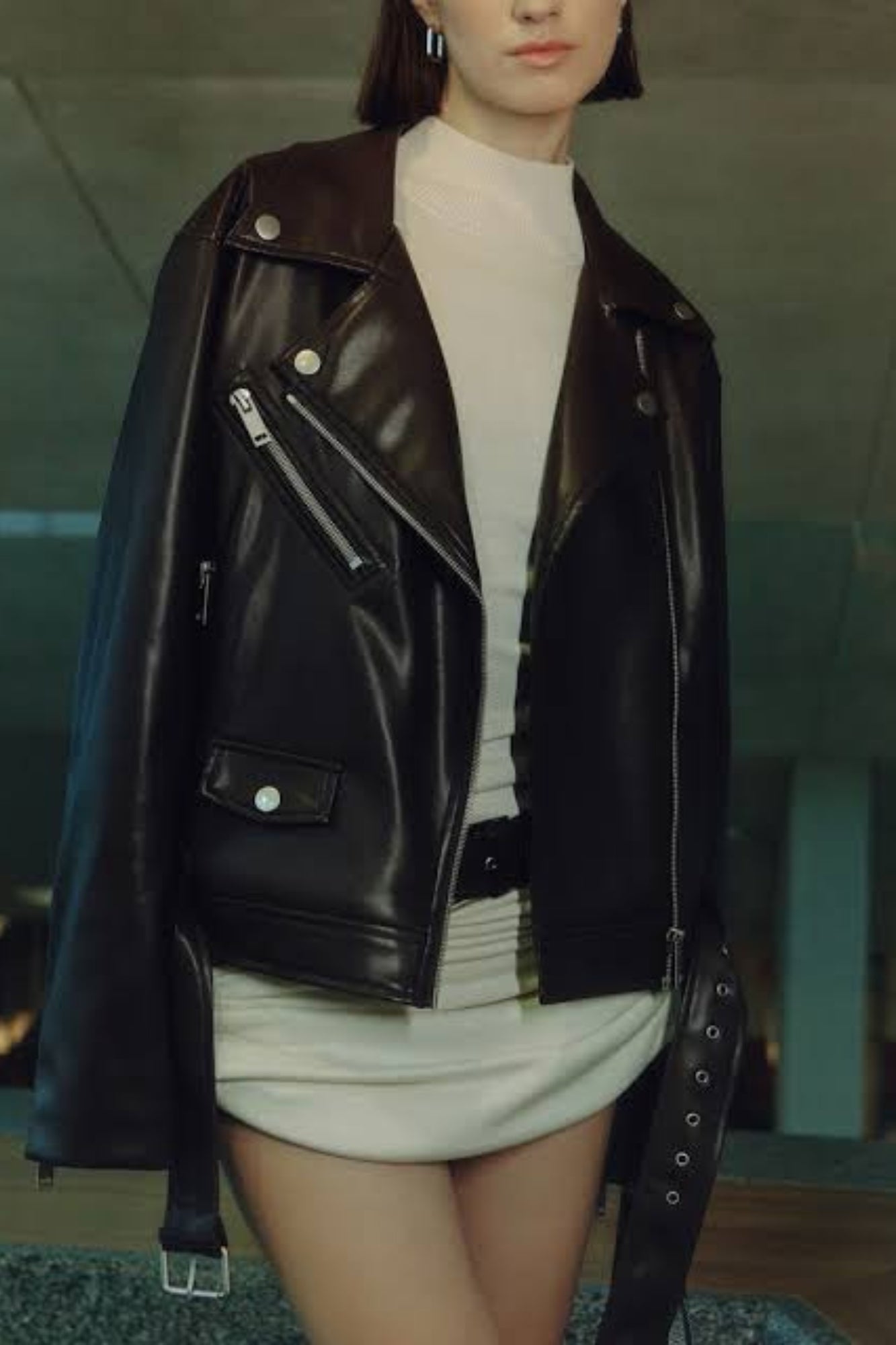 Confeccionada em couro sintético granulado, possui modelagem oversized, ombros acolchoados e acabamento forrado. Fechamento frontal em zíper.