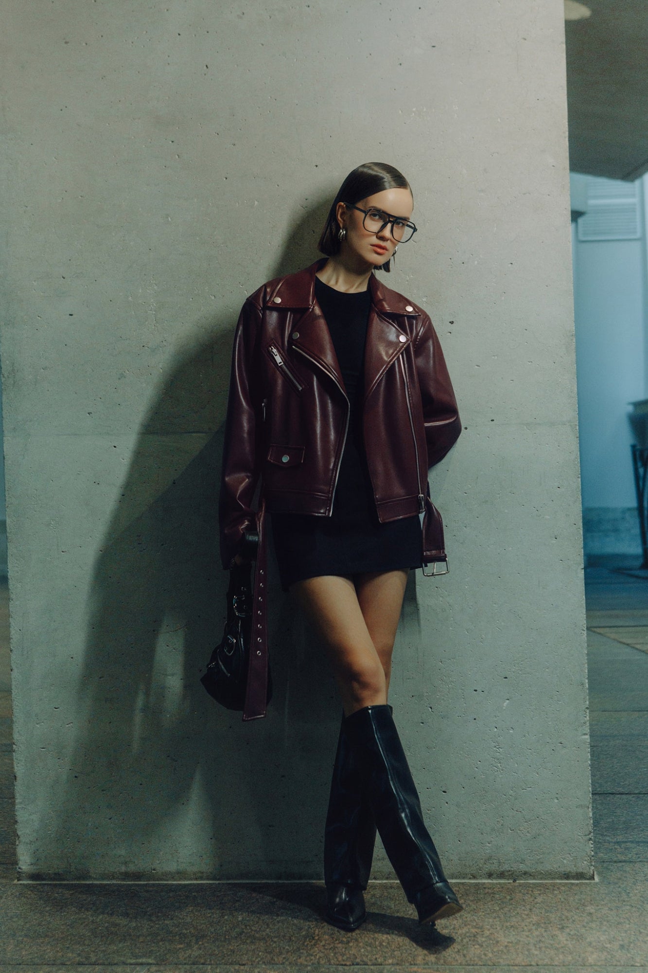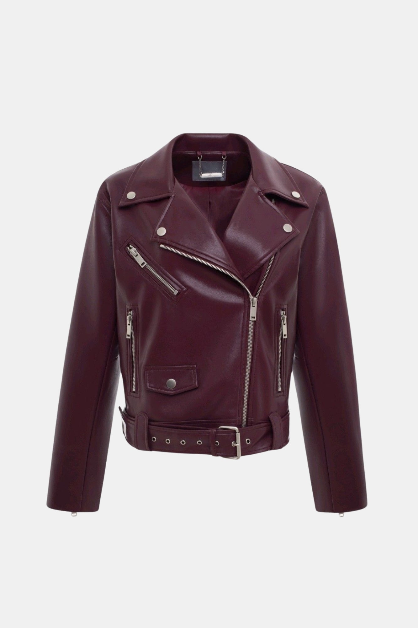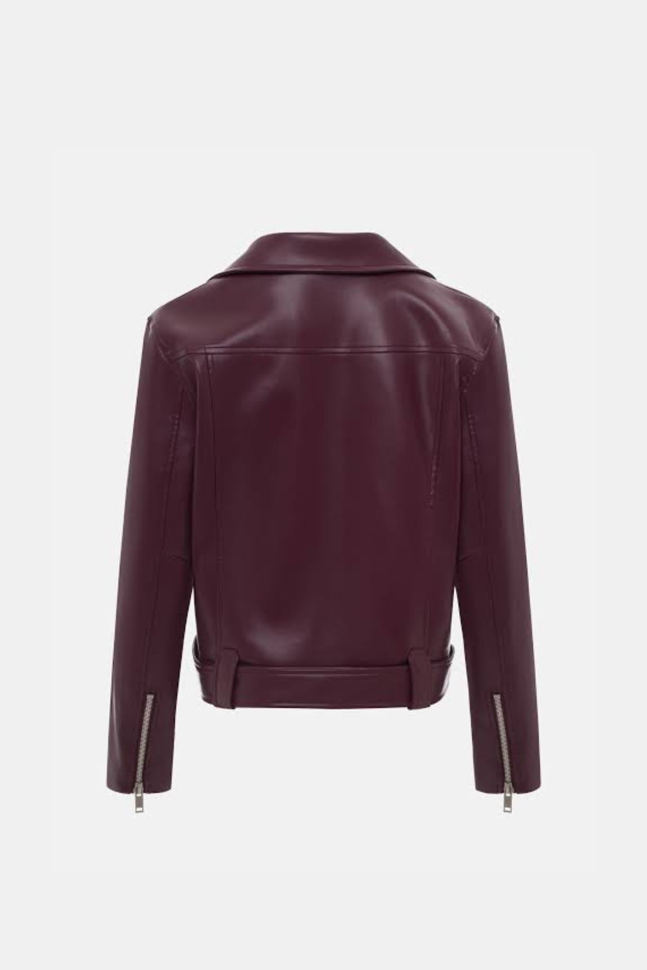 Confeccionada em couro sintético granulado, possui modelagem oversized, ombros acolchoados e acabamento forrado. Fechamento frontal em zíper.