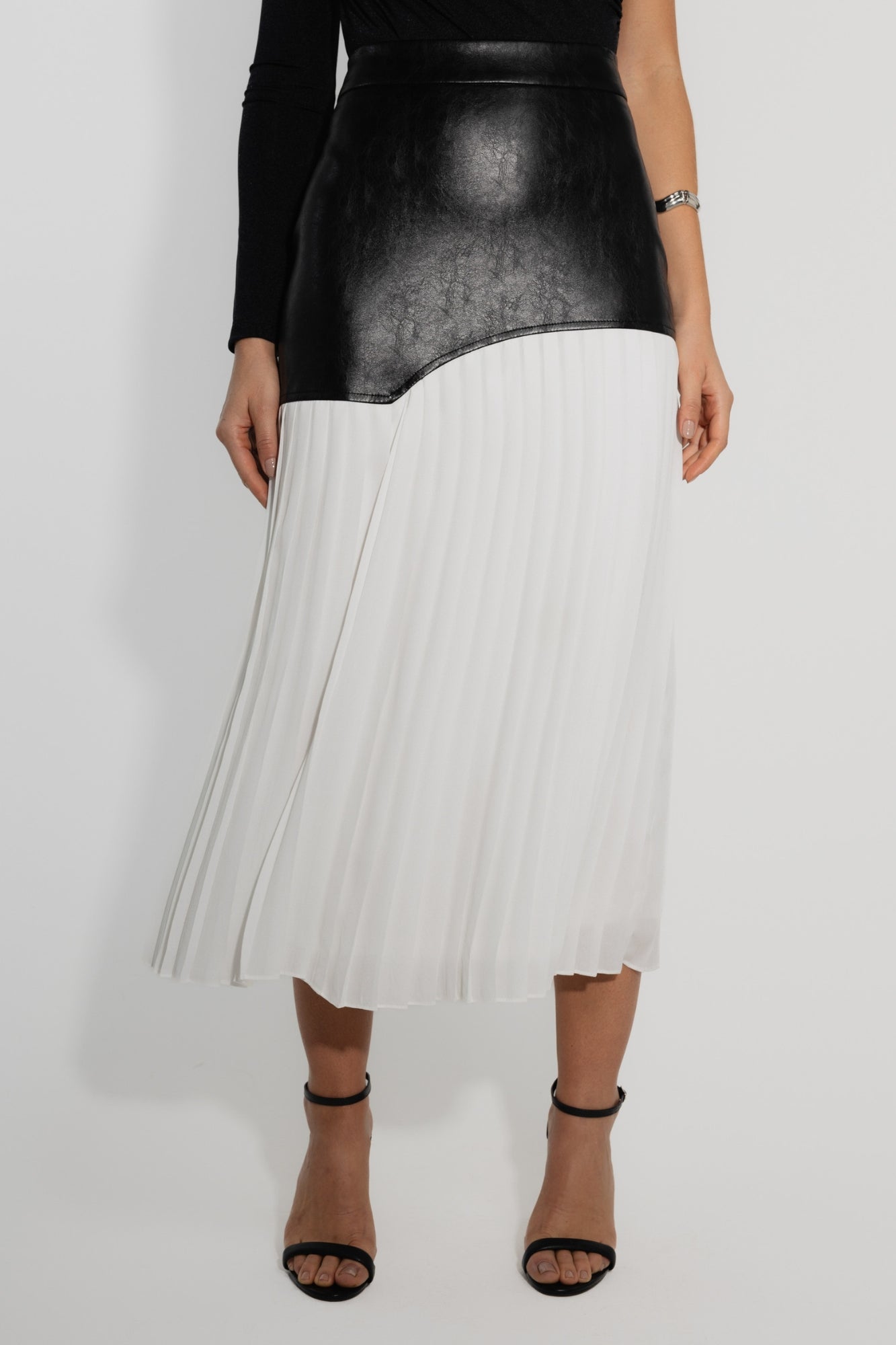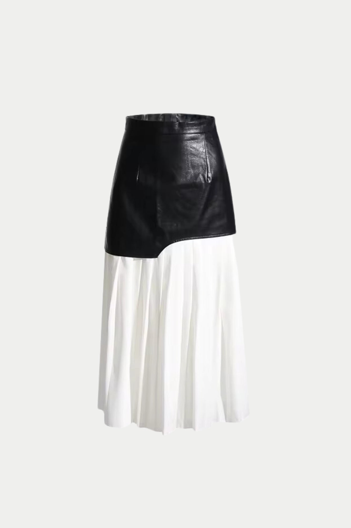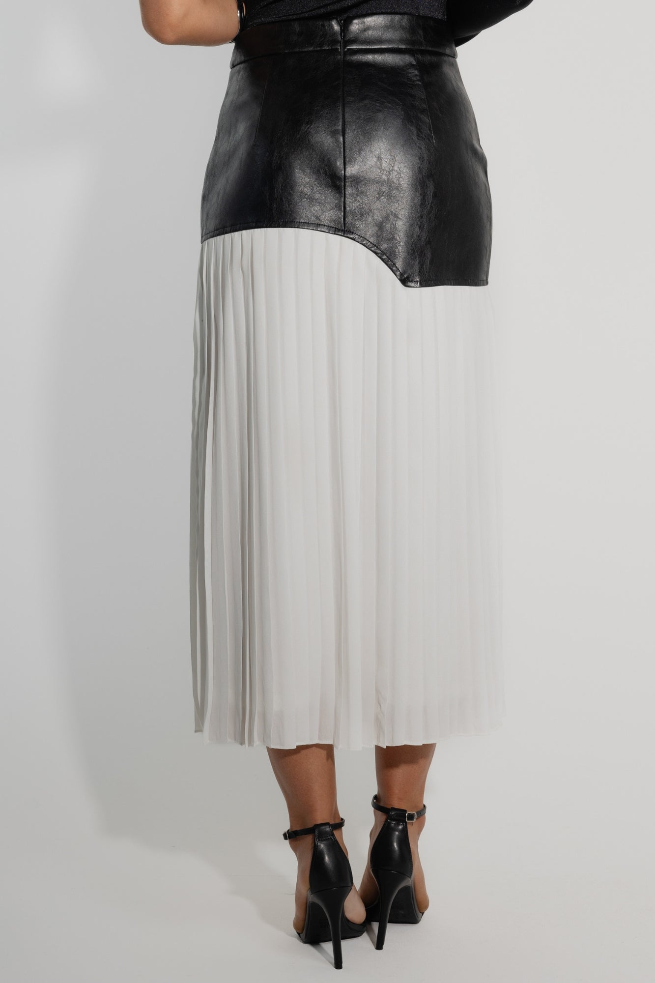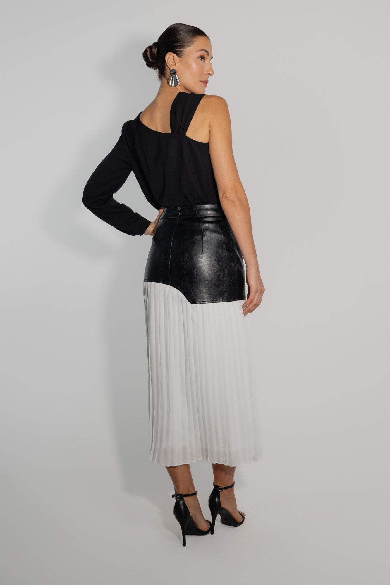 Elegante e sofisticada, a saia Carolina combina a estrutura do couro com a leveza do tecido fluido, criando um contraste moderno e versátil. Perfeita para compor looks autênticos.