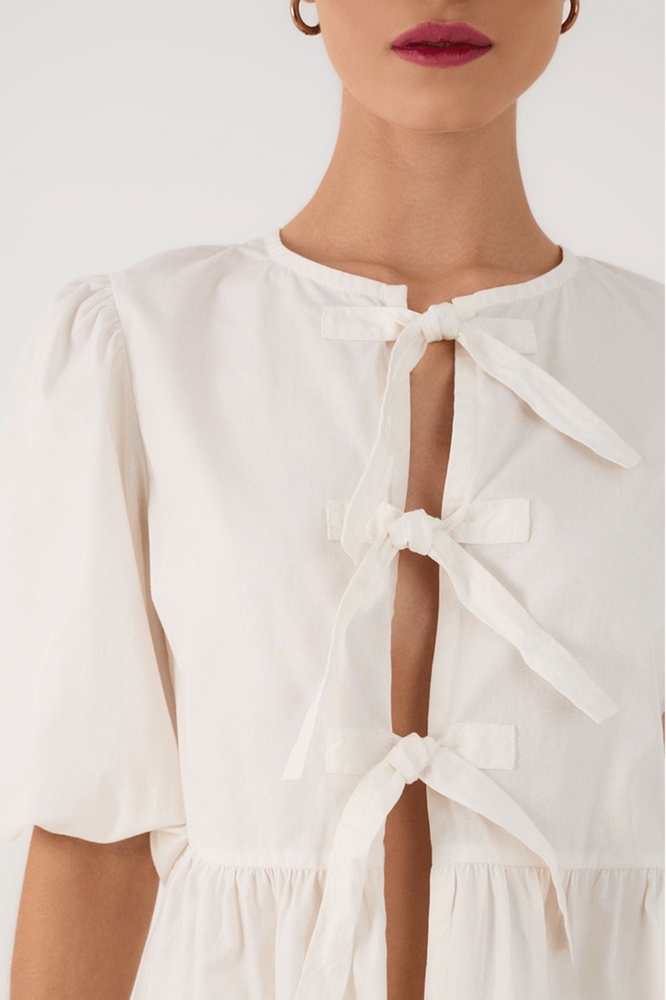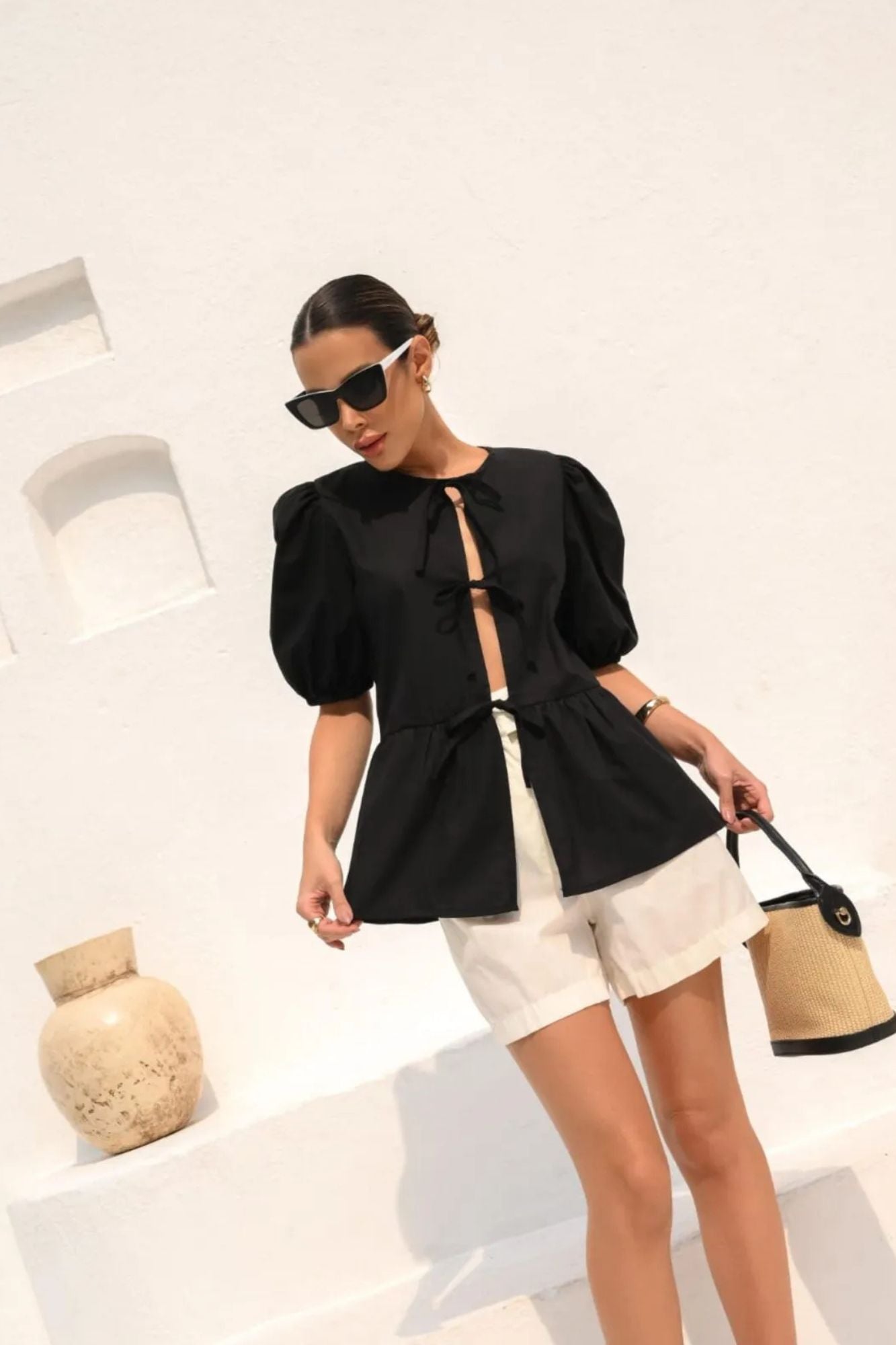 Leve, romântico e cheio de charme! A Bata Melissa traz um fecho em amarração frontal, criando laços delicados que podem ser ajustados para um caimento perfeito. Confeccionada em tricoline de algodão com elastano, garante conforto e sofisticação para composições versáteis e elegantes.